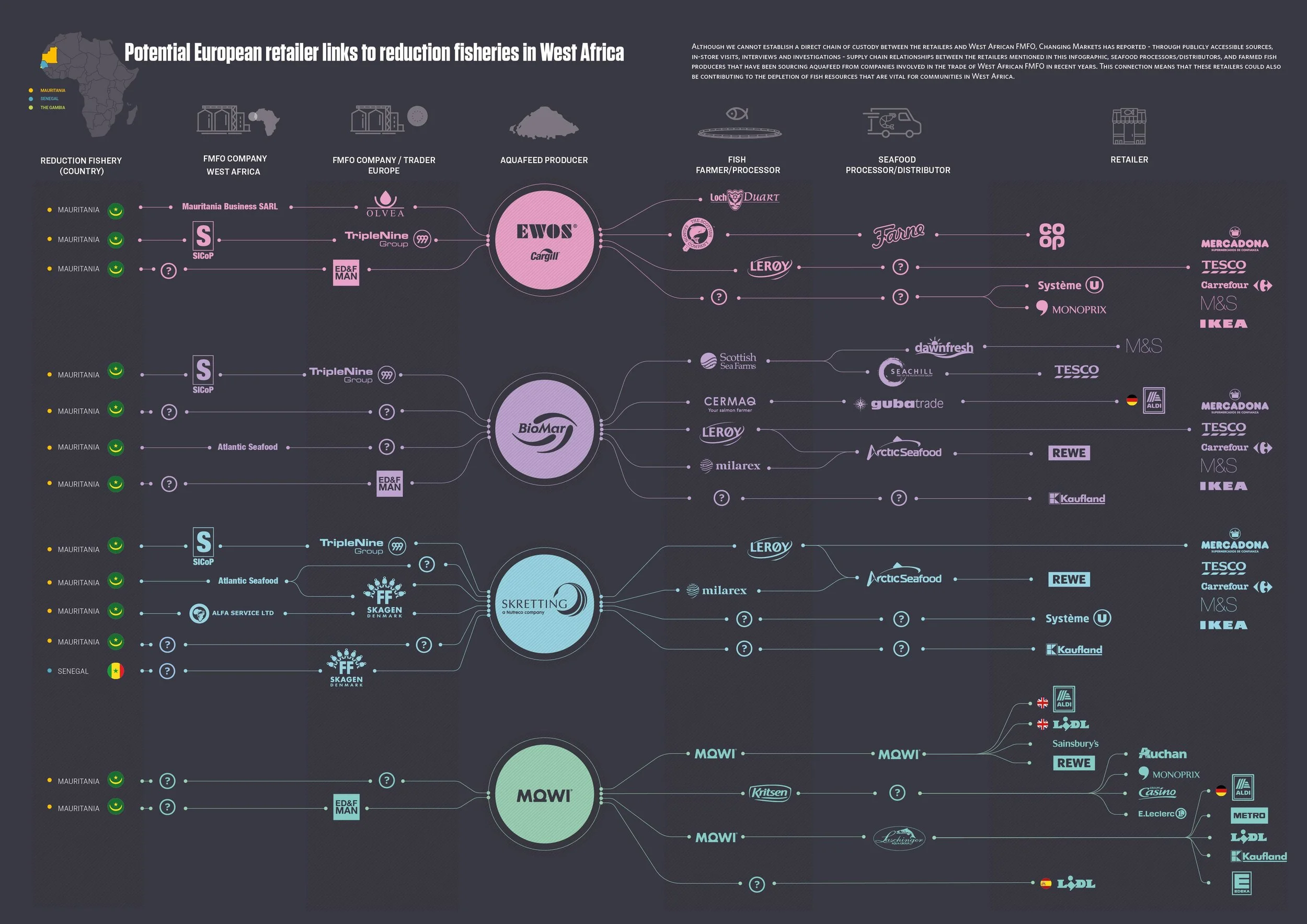 Mapping fishmeal supply chains linking unsustainable sourcing to farmed fish, destroying wild stocks.