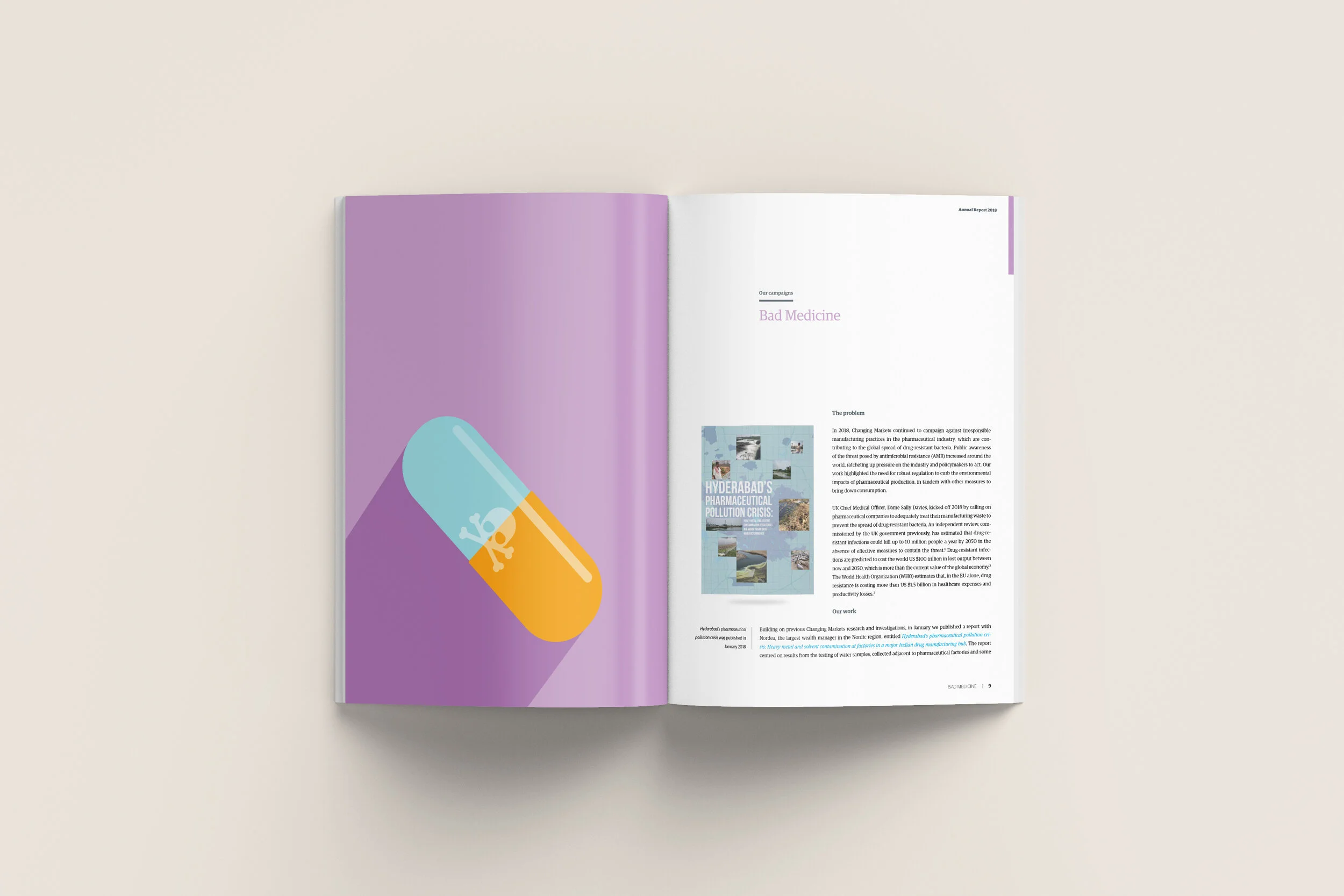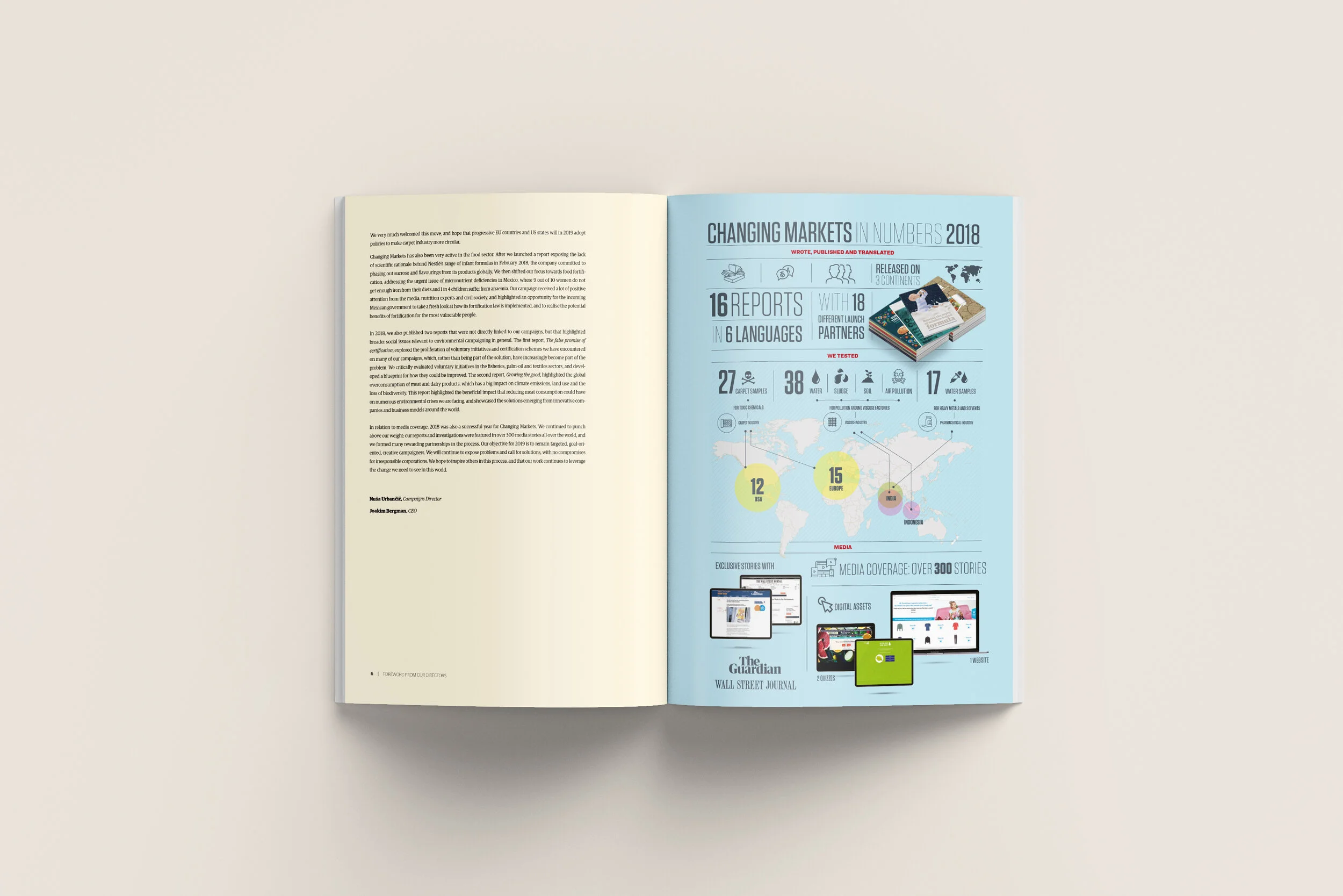 Data-driven visual storytelling for Changing Markets Foundation annual impact reporting.