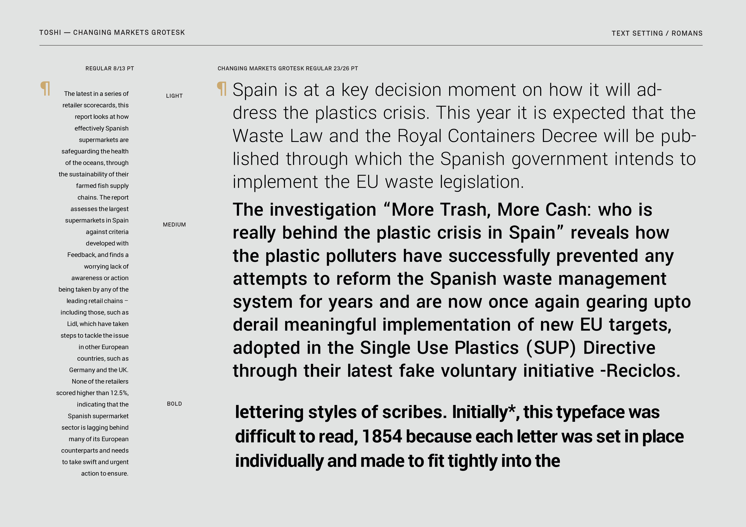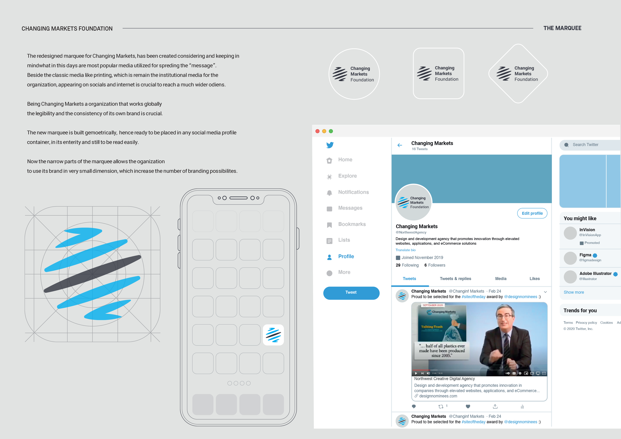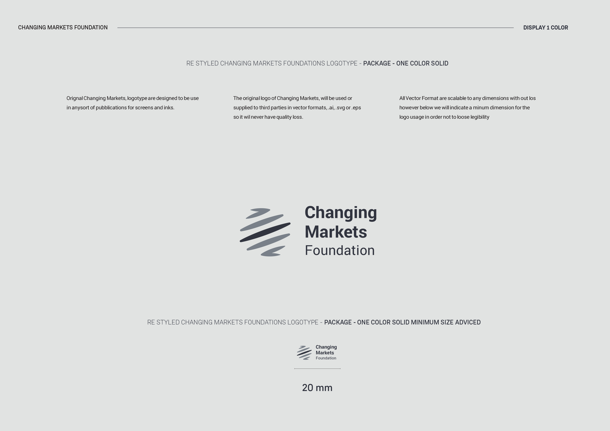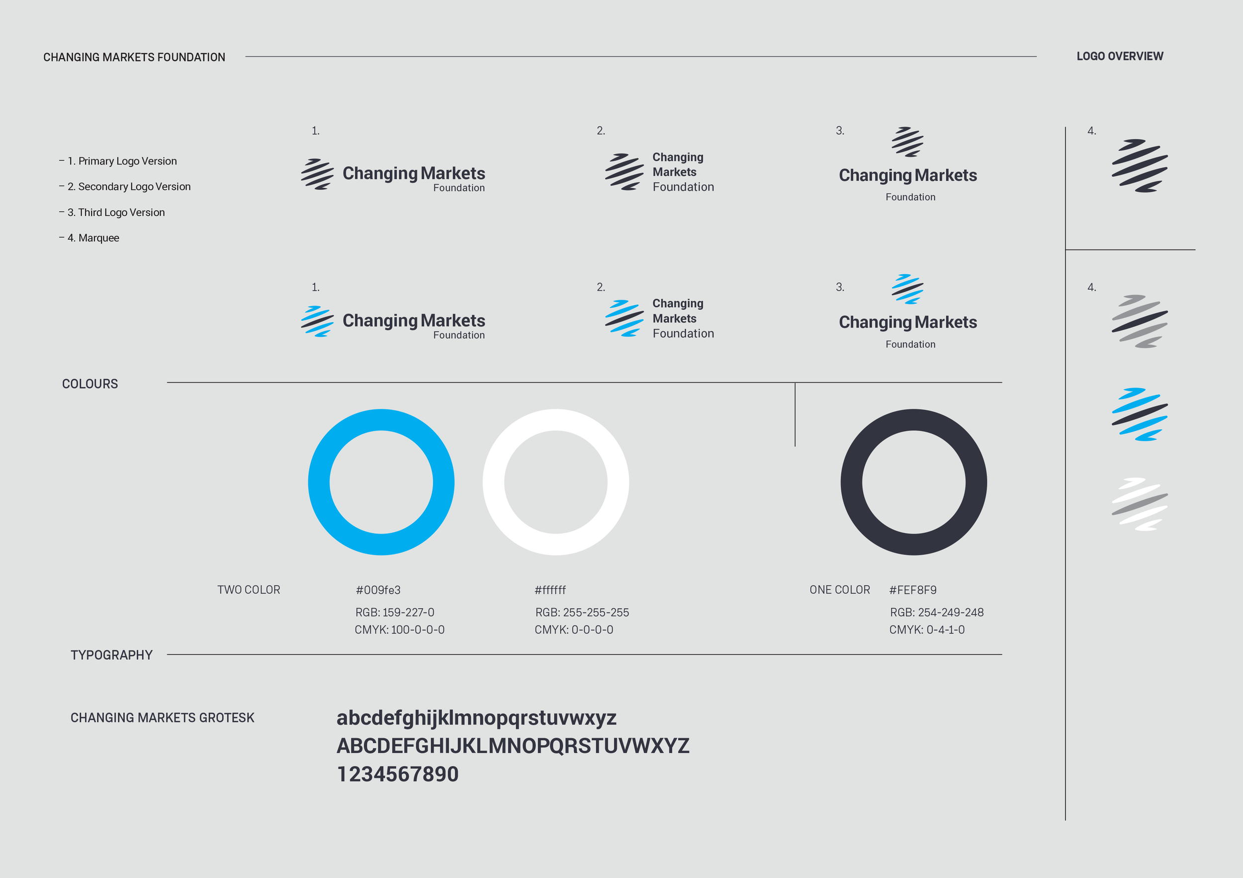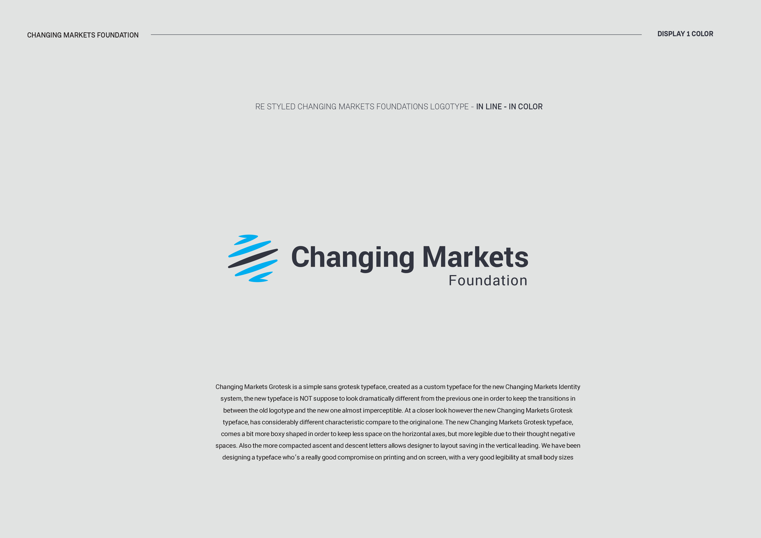 Custom typeface and visual identity design for Changing Markets Foundation.