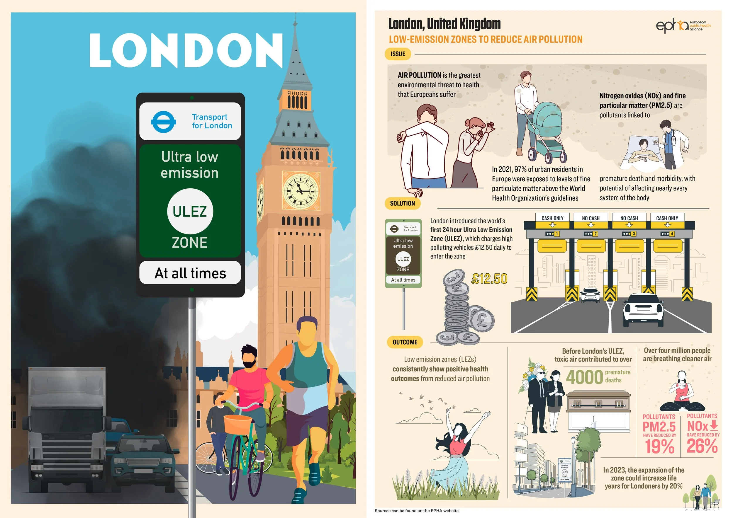 Visual communication for the European Public Health Alliance on clean air and respiratory health.